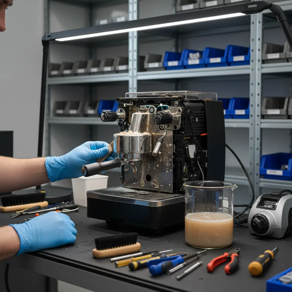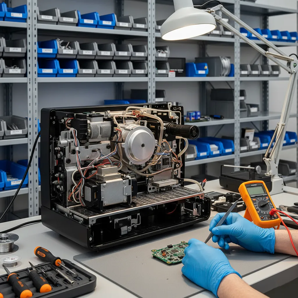 Innova Servis Mərkəzi-də kofe aparatı təmiri (sinonim: qəhvə aparatı təmiri) kompleks şəkildə aparılır: kapuçinator (süd sistemi), termoblok/qızdırıcı, pompa (nasos), elektronika (plata), təmizləmə/kirəc (descaling) və diaqnostika.
