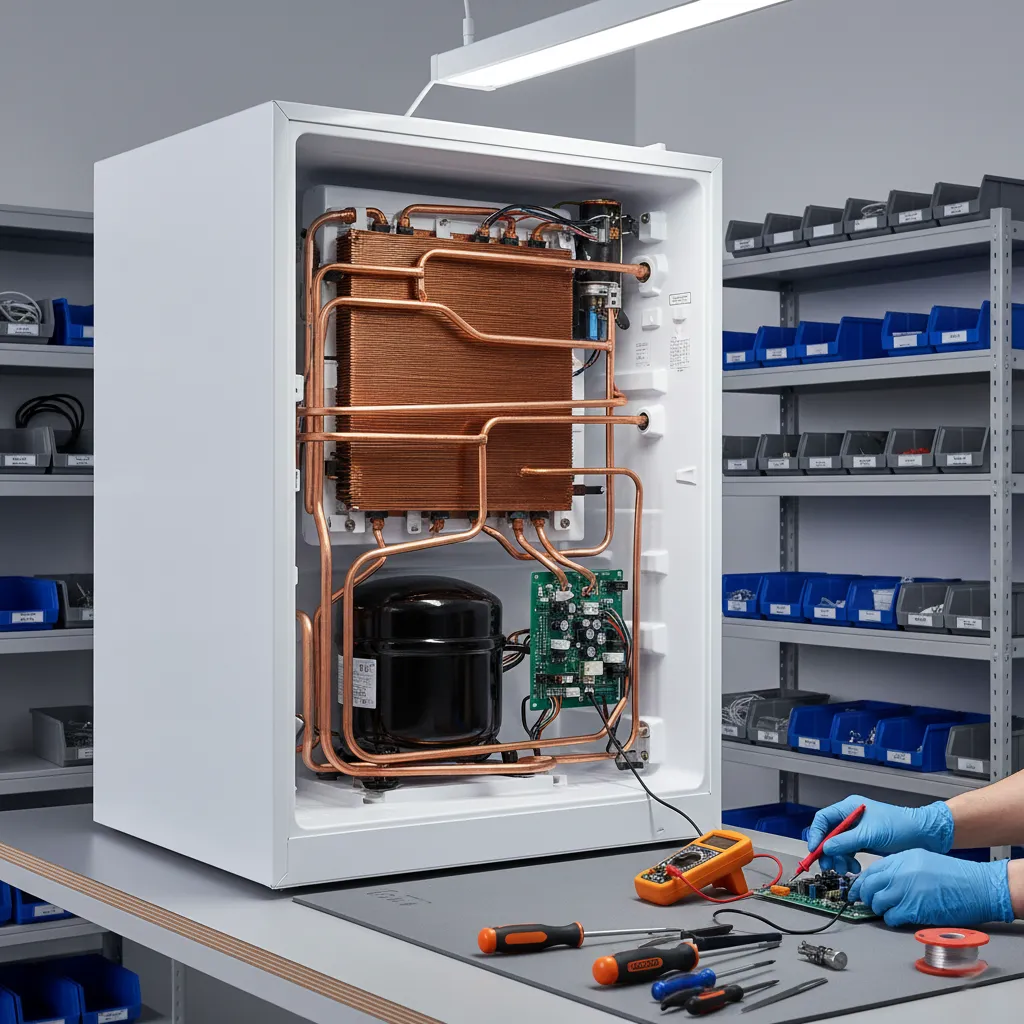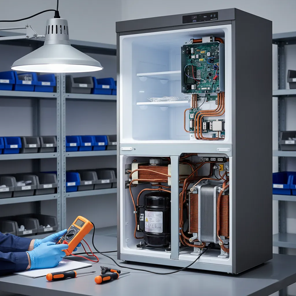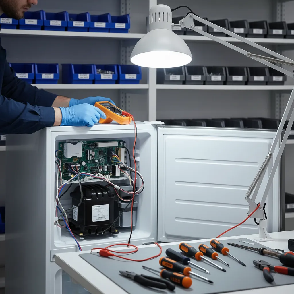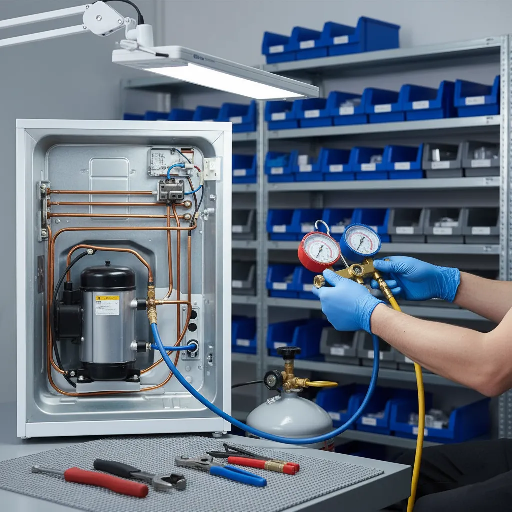 Innova Servis Mərkəzi-də soyuducu təmiri kompressor və start rele, freon doldurma və sızma axtarışı, No Frost/defrost sistemi, termostat/plata (idarəetmə elektronikasI), qapı rezini (manjet) və mexaniki hissələrin bərpasını əhatə edir. Məqsəd – sərinlətməni bərpa etmək və stabil işi təmin etməkdir.